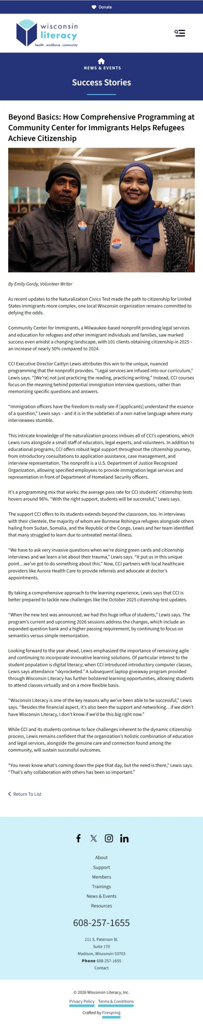 In my role as a writer with Wisconsin Literacy, I have the incredible opportunity to connect with folks making a real impact in their communities and highlight success stories from member agencies throughout the state. Leveraging my training as a student reporter (which once earned me a spot on the Michigan Interscholastic Press Association’s All-State Student Journalist Staff), I conduct interviews with literacy agency volunteers, staffers, and students, learning how they promote essential language skills, mathematics courses, job services, and citizenship support, to underserved populations.